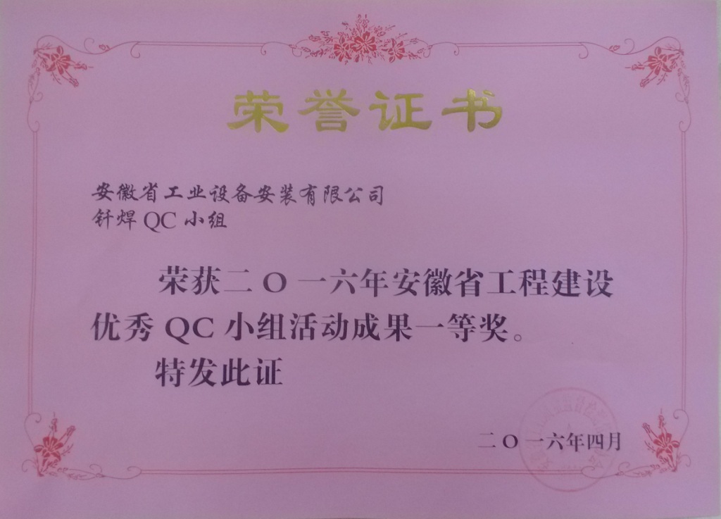 近日,安徽省工程建設(shè)優(yōu)秀QC小組活動(dòng)成果交流會(huì)在肥順利舉行。本次活動(dòng)以“萬眾創(chuàng)新、扎實(shí)推進(jìn)、分享提升”為主題,由安徽省工程質(zhì)量監(jiān)督檢測管理協(xié)會(huì)主辦,安徽建工集團(tuán)有限公司協(xié)辦,來自全省建筑業(yè)企業(yè)的235支QC小組成員競技一堂。會(huì)上,安徽安裝公司質(zhì)量管理小組題為“提高冷庫制冷系統(tǒng)銅管釬焊的一次合格率”的成果獲得了全省一等獎(jiǎng)的好成績。