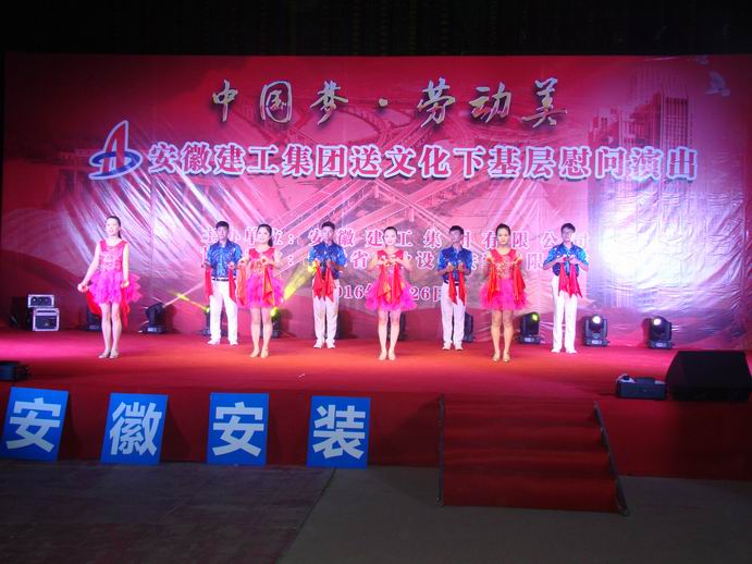 8月26日晚,集團公司送文化下基層深入公司白湖監(jiān)獄罪犯醫(yī)療綜合樓項目部慰問演出,白湖監(jiān)獄綜合樓項目部全體管理人員和農(nóng)民工兄弟200多人現(xiàn)場觀看了演出。該工程位于廬江縣白湖鎮(zhèn),這里工作著一批腳踏實地、埋頭苦干、敢于擔(dān)當(dāng)、奉獻企業(yè)的職工,來自集團公司各子公司的“演員”,帶著自編、自導(dǎo)、自演的精品文藝作品,將用一場精妙的文化活動,在這里掀起文化與建設(shè)互動的歡樂波瀾。集團公司工會主席徐曉光,白湖分局黨委副書記、總經(jīng)理沈建華以及公司有關(guān)領(lǐng)導(dǎo)和參演單位工會主席出席了演出活動。