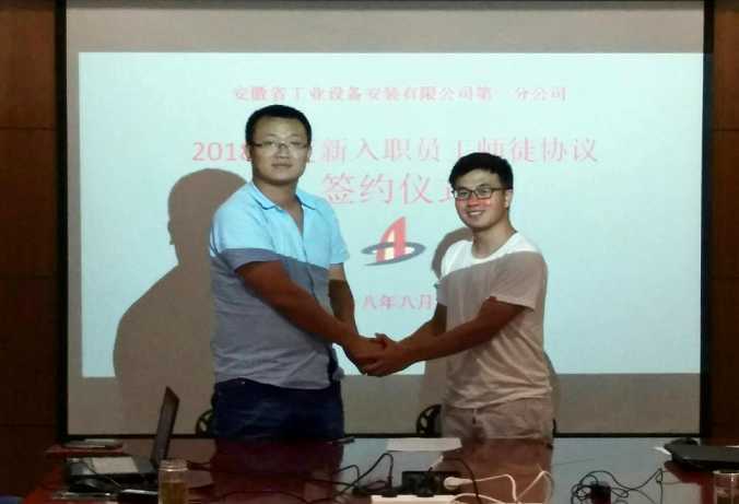 為加快推進公司人才隊伍建設(shè),滿足公司可持續(xù)健康發(fā)展需要,安徽安裝公司規(guī)范用才機制,加大人才培養(yǎng)力度。近日,公司組織新入職員工進行師徒結(jié)對,簽訂師徒協(xié)議,安排有經(jīng)驗的管理人員做好“傳幫帶”,幫助新員工盡快地適應(yīng)企業(yè)、熟悉工作,掌握崗位技能,盡快成長成熟。