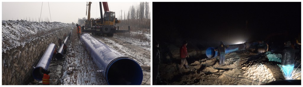 該工程是在野外長距離作業(yè),管道沿途需要穿過高速、省道、鐵路、亞歐光纜及眾多鄉(xiāng)村道路和田間陰溝,施工區(qū)域內(nèi)有農(nóng)田、戈壁、沙漠,沼澤等,自然環(huán)境極其惡劣,施工地質(zhì)極為復(fù)雜。尤其在步入11月,新疆烏蘇市正式進(jìn)入寒冬季節(jié),期間平均氣溫都在零下十度以下,并時(shí)常飛舞著雪花,由于晝夜溫差大,夜間項(xiàng)目上的氣溫更是達(dá)到零下二三十度,這給項(xiàng)目部施工帶來了嚴(yán)重挑戰(zhàn),但項(xiàng)目部員工沒有被惡劣的環(huán)境所嚇倒,他們“逢山開路、遇水搭橋”,努力克服各方面不利因素,合理安排施工進(jìn)度計(jì)劃。全體職工發(fā)揚(yáng)安徽建工人“特別能吃苦,特別能戰(zhàn)斗”的企業(yè)作風(fēng),在公司“大干60天”勞動(dòng)競賽的正向激勵(lì)下,不畏環(huán)境艱苦,抓質(zhì)量,保安全,戰(zhàn)荒漠,斗嚴(yán)寒,每天堅(jiān)持戰(zhàn)斗在生產(chǎn)第一線,哪里有施工,哪里就有管理人員的堅(jiān)定身影。