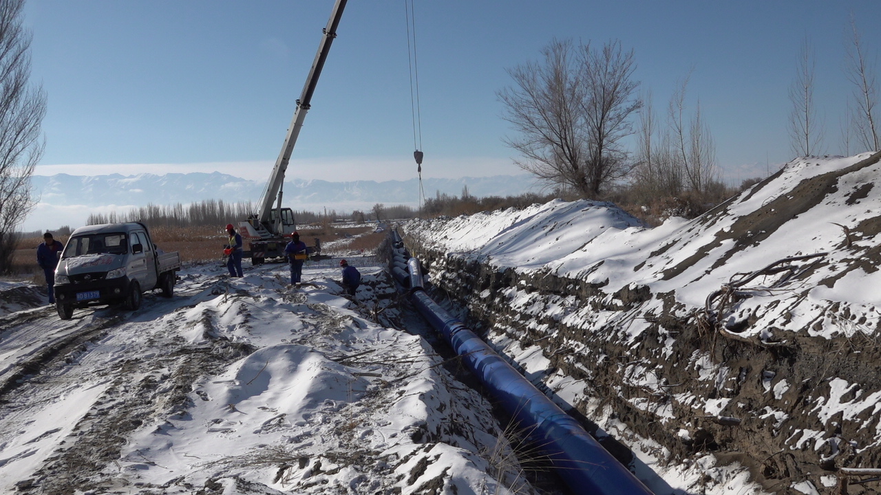 中水回用工程是在野外長距離作業(yè),管道沿途需要穿過高速、省道、鐵路、亞歐光纜及眾多鄉(xiāng)村道路和田間陰溝,施工區(qū)域內(nèi)有農(nóng)田、戈壁、沙漠,沼澤等,自然環(huán)境極其惡劣,施工地質極為復雜。尤其在步入11月,新疆烏蘇市正式進入寒冬季節(jié),期間平均氣溫都在零下十度以下,并時常飛舞著雪花,由于晝夜溫差大,夜間項目上的氣溫更是達到零下二三十度,這給項目部施工帶來了嚴重挑戰(zhàn),但項目部員工沒有被惡劣的環(huán)境所嚇倒,他們“逢山開路、遇水搭橋”,努力克服各方面不利因素,合理安排施工進度計劃。全體職工發(fā)揚安徽建工人“特別能吃苦,特別能戰(zhàn)斗”的企業(yè)作風,在公司“大干60天”勞動競賽的正向激勵下,不畏環(huán)境艱苦,抓質量,保安全,戰(zhàn)荒漠,斗嚴寒,每天堅持戰(zhàn)斗在生產(chǎn)第一線,哪里有施工,哪里就有管理人員的堅定身影。