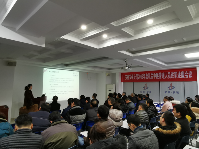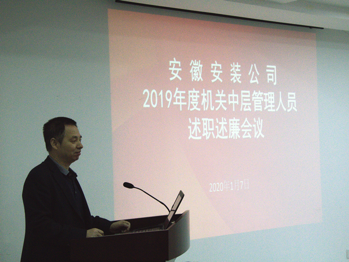 1月7日上午,安徽安裝公司召開2019年度機關(guān)中層管理人員述職述廉會議。公司領(lǐng)導班子成員、機關(guān)中層管理人員、分公司黨政負責人、機關(guān)部門員工代表共60余人參加了此次會議。會議由公司黨委書記、董事長胡六中主持。