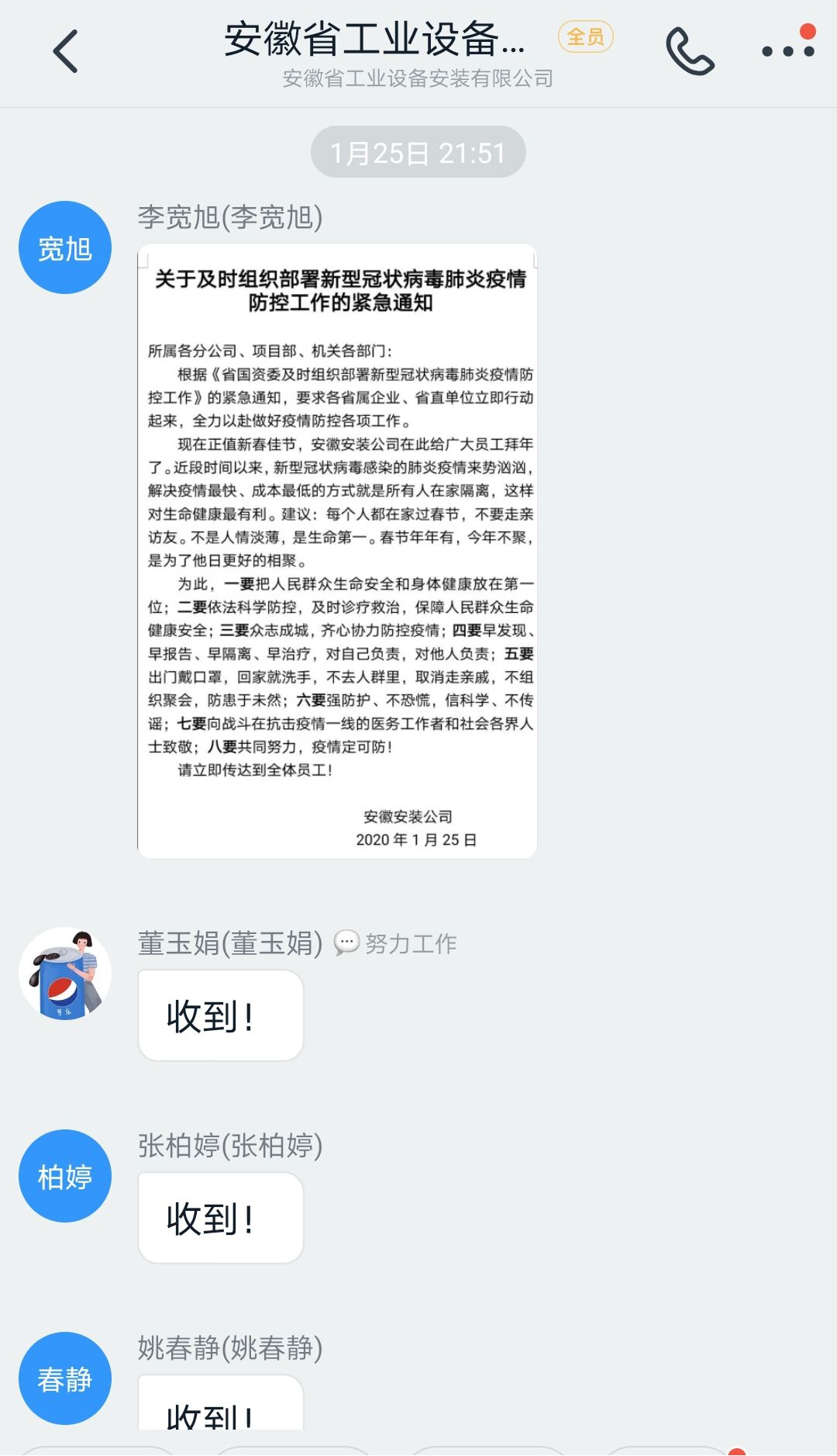 根據(jù)《省國資委及時(shí)組織部署新型冠狀病毒肺炎疫情防控工作》的緊急通知,要求各省屬企業(yè)、省直單位立即行動(dòng)起來,全力以赴做好疫情防控各項(xiàng)工作,1月25日發(fā)出緊急通知,部署具體要求,立即傳達(dá)到全體員工。