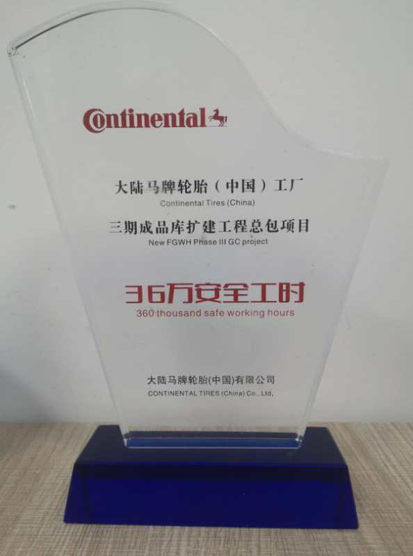 近日,大陸馬牌輪胎(中國)有限公司授予安徽安裝公司“優(yōu)質(zhì)承包商”獎牌和“36萬安全工時”獎杯。