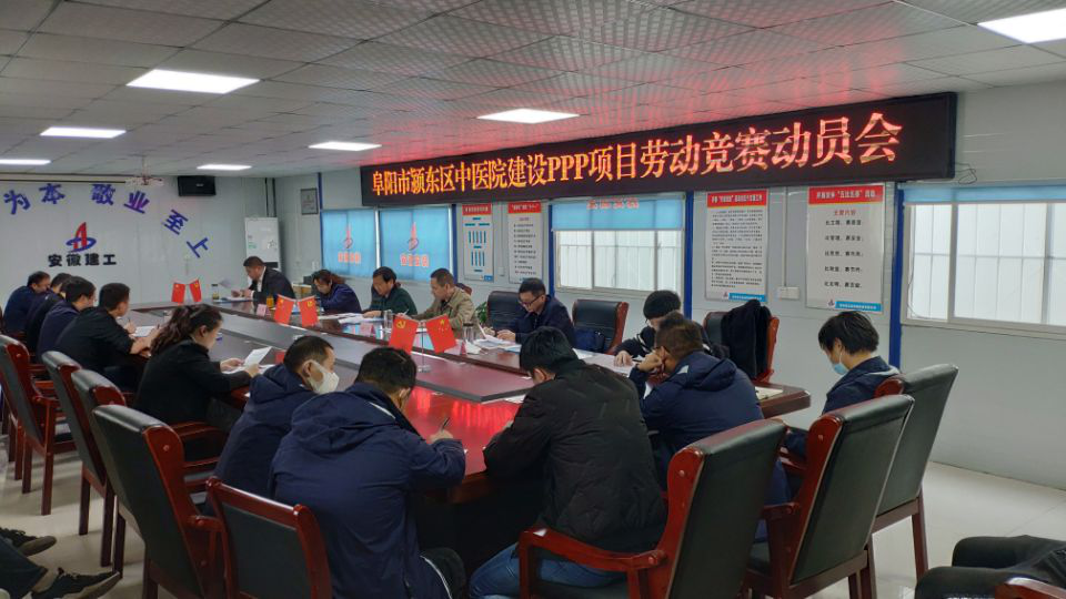 4月8日下午,阜陽(yáng)市潁東區(qū)中醫(yī)院建設(shè)PPP項(xiàng)目部召開(kāi)2020年勞動(dòng)競(jìng)賽動(dòng)員會(huì)。公司黨委書(shū)記、董事長(zhǎng)胡六中,副總經(jīng)理高飛,紀(jì)委書(shū)記、工會(huì)主席李寬旭及公司相關(guān)部門人員、房建(裝飾)分公司班子成員及項(xiàng)目部員工參會(huì),會(huì)議由分公司黨支部副書(shū)記張曼主持。