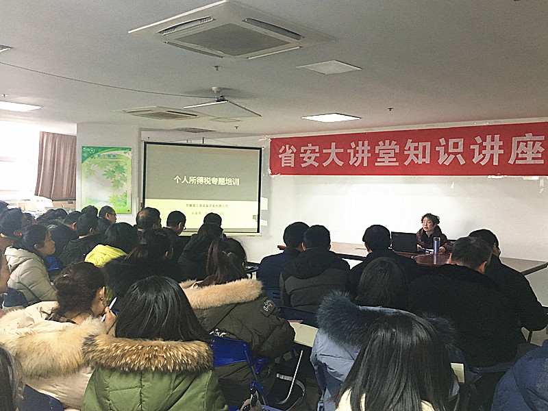 2月21日下午“省安大講堂”—個人所得稅專題培訓在職工之家開課。本次培訓由財務部經(jīng)理許素寒授課,公司機關、分公司相關人員共80余人參加。