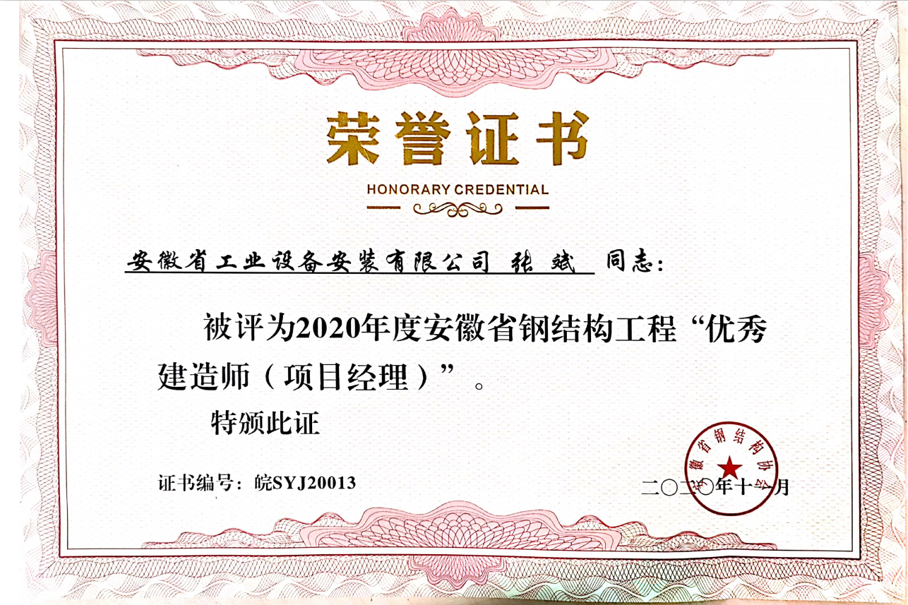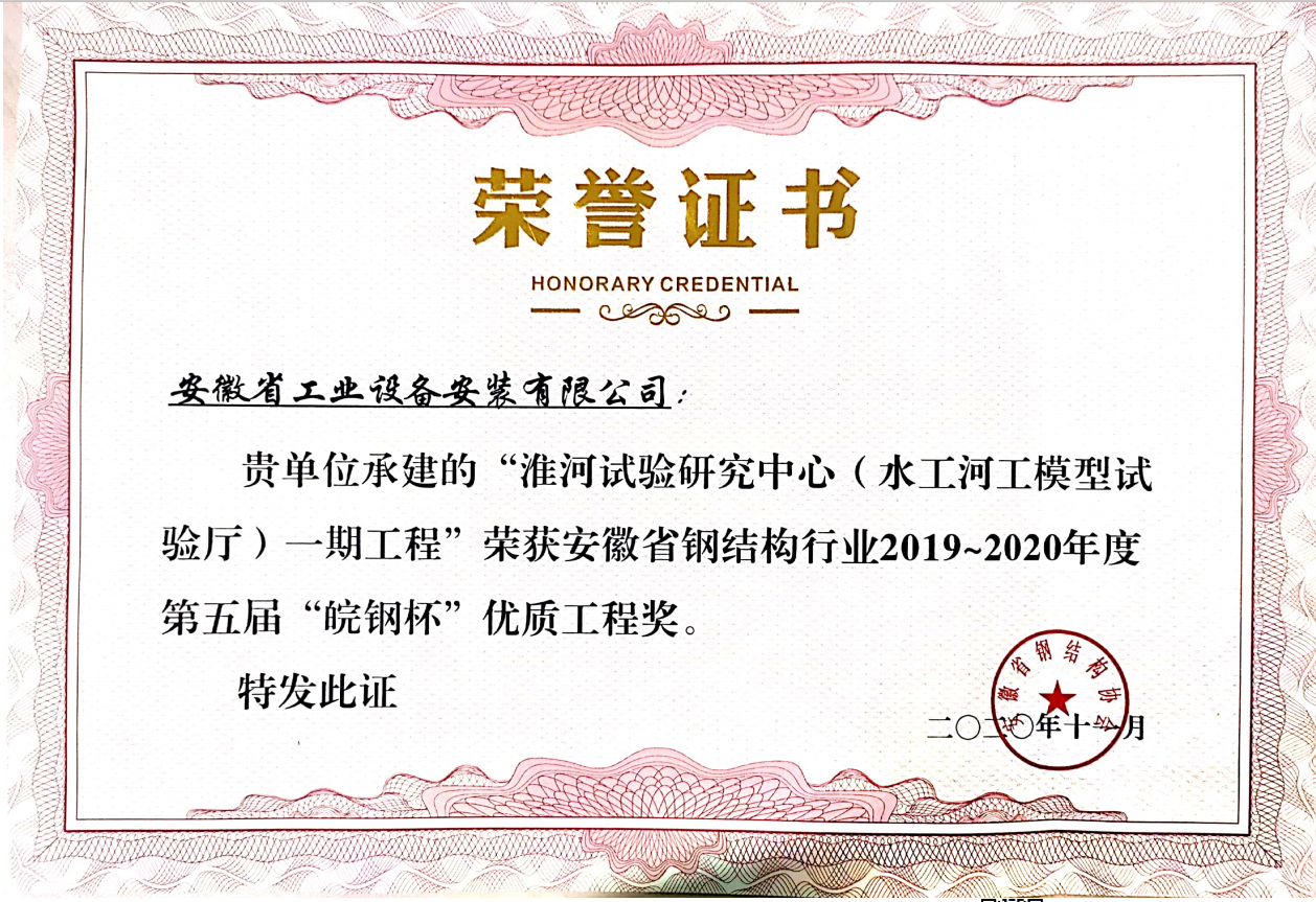 近日,以“聚焦十四五,展望鋼結(jié)構(gòu)”為主題的安徽省鋼結(jié)構(gòu)協(xié)會(huì)三屆二次會(huì)員代表大會(huì)暨學(xué)術(shù)交流會(huì)公布了“皖鋼杯”獲獎(jiǎng)名單,安徽安裝公司承建的淮河試驗(yàn)研究中心(水工河工模型試驗(yàn)廳)一期工程榮獲“皖鋼杯”優(yōu)質(zhì)工程獎(jiǎng),公司黨委書記、董事長(zhǎng)胡六中榮獲安徽省鋼結(jié)構(gòu)行業(yè)優(yōu)秀企業(yè)家,蚌埠分公司副經(jīng)理、淮河試驗(yàn)研究中心一期工程項(xiàng)目經(jīng)理張斌被評(píng)為優(yōu)秀項(xiàng)目經(jīng)理。這也是我公司首次榮獲鋼結(jié)構(gòu)工程類獎(jiǎng)項(xiàng)。