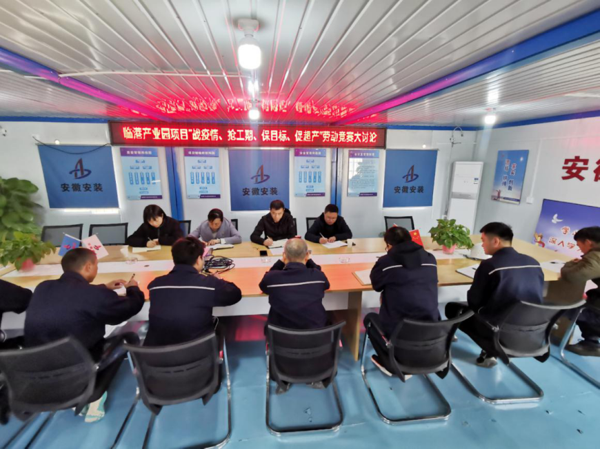 為認真貫徹集團公司“戰(zhàn)疫情、搶工期、保目標、促超產”勞動競賽活動精神,11月19日下午,安徽安裝公司圍繞“不能按時交工為恥辱”的履約意識,在臨港項目部會議室組織開展“戰(zhàn)疫情、搶工期、保目標、促超產”主題大討論活動。公司紀委書記、工會主席李寬旭,公司相關部門負責人,蚌埠分公司領導班子成員,項目管理人員等共計20余人參加會議,會議由李寬旭主持。