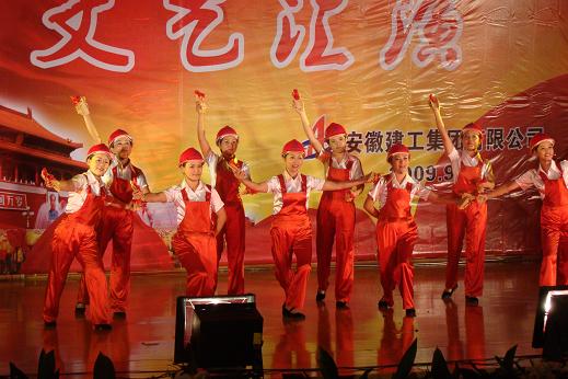 在文藝匯演中,集團(tuán)機(jī)關(guān)及下屬單位參演節(jié)目17個(gè),或舞蹈,或小品,或服裝秀,亮麗紛呈,掌聲不斷。我公司員工自編自演的參演作品——音樂快板《建工禮贊》第八個(gè)出場(chǎng),質(zhì)樸、熱烈、喜慶,獲得9.84的全場(chǎng)最高分,繼上屆藝術(shù)節(jié)琴書說唱《大漠邊陲譜新篇》榮獲一等獎(jiǎng)后,再獲集團(tuán)公司文藝匯演一等獎(jiǎng),今天晚上將代表建工集團(tuán)參加省屬企業(yè)國慶文藝晚會(huì)。