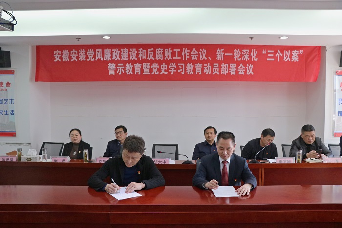 期間,公司黨委與所屬各黨支部簽訂了《黨風(fēng)廉政建設(shè)責(zé)任書》,公司中層管理人員簽訂了《廉潔自律承諾書》。會議以現(xiàn)場加視頻形式召開。公司領(lǐng)導(dǎo)班子成員、機(jī)關(guān)中層管理人員、在肥地區(qū)分公司領(lǐng)導(dǎo)班子成員及機(jī)關(guān)全體黨員在主會場參會;所屬分公司領(lǐng)導(dǎo)班子成員在視頻分會場參會。