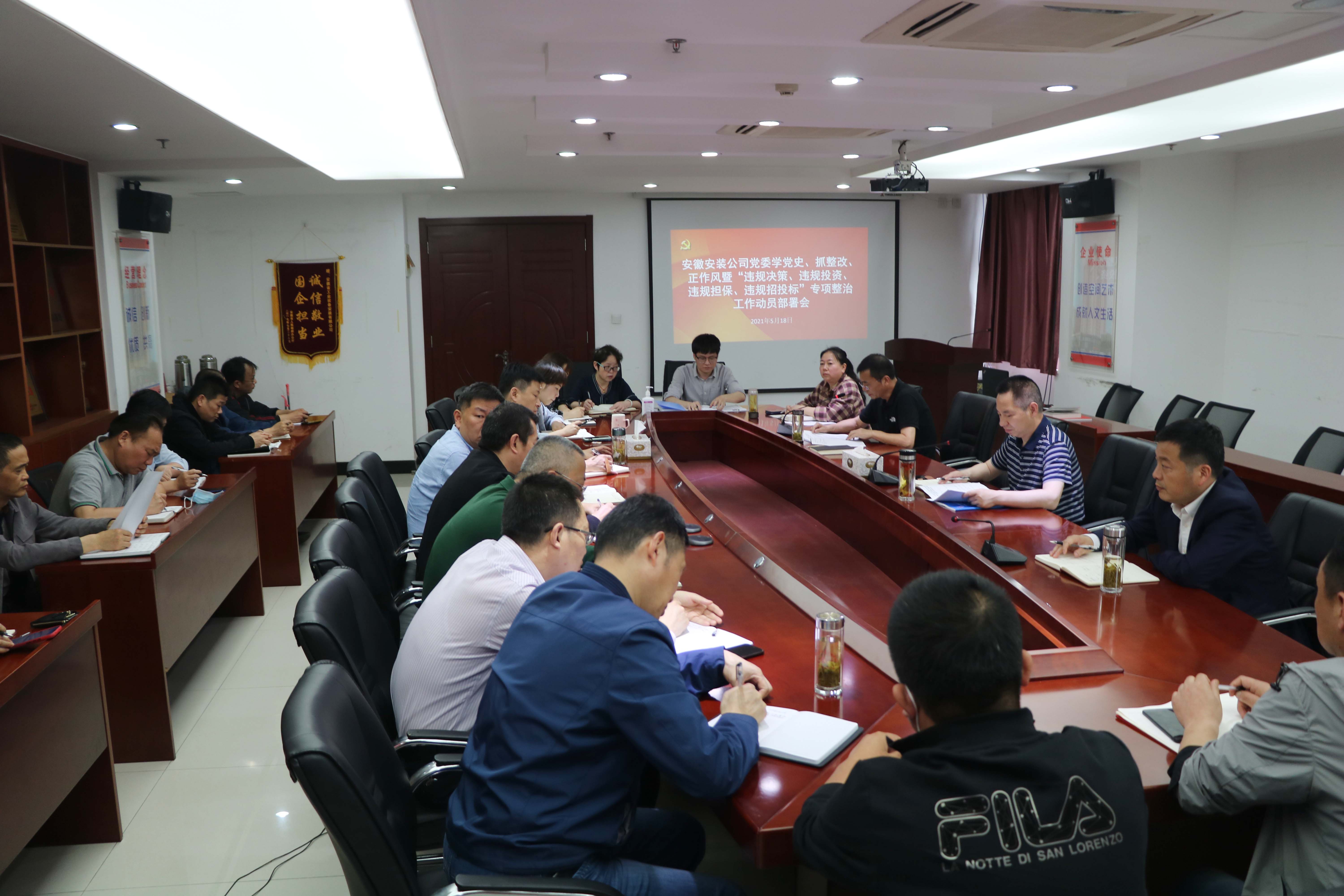 5月18日下午,安徽安裝黨委召開(kāi)學(xué)黨史、抓整改、正作風(fēng)暨“違規(guī)決策、違規(guī)投資、違規(guī)擔(dān)保、違規(guī)招投標(biāo)”專項(xiàng)整治動(dòng)員部署會(huì)議,公司領(lǐng)導(dǎo)班子成員、機(jī)關(guān)部門負(fù)責(zé)人、所屬各分公司領(lǐng)導(dǎo)班子成員參加會(huì)議,會(huì)議以現(xiàn)場(chǎng)加視頻形式召開(kāi),公司黨委書(shū)記、董事長(zhǎng)胡六中主持會(huì)議并講話。