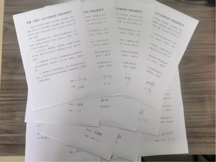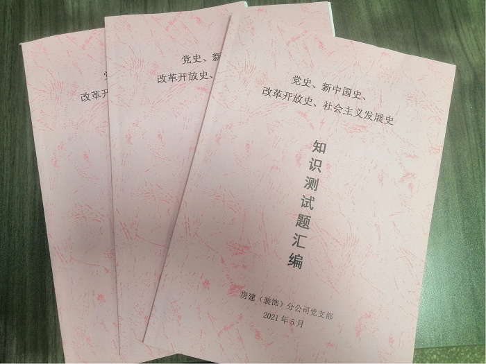會(huì)議最后,所有與會(huì)人員簽訂了《房建(裝飾)分公司服務(wù)職工群眾踐諾書》,布置下發(fā)了《黨史、新中國史、改革開放史、社會(huì)主義發(fā)展史知識(shí)測試題匯編》。
