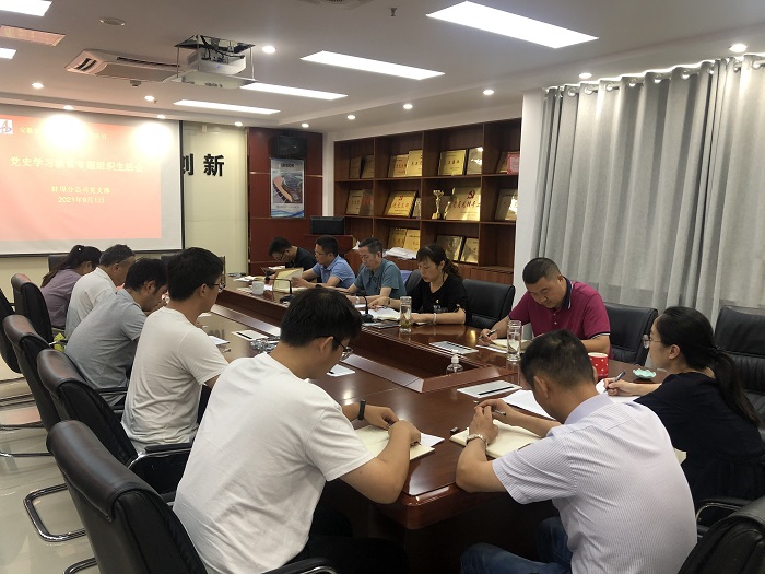 9月1日下午蚌埠分公司黨支部召開黨史學習教育專題組織生活會。公司黨委委員、副總經理趙伯平以普通黨員身份出席會議,支部班子成員、全體黨員參會,會議由黨支部書記程茂麗主持。