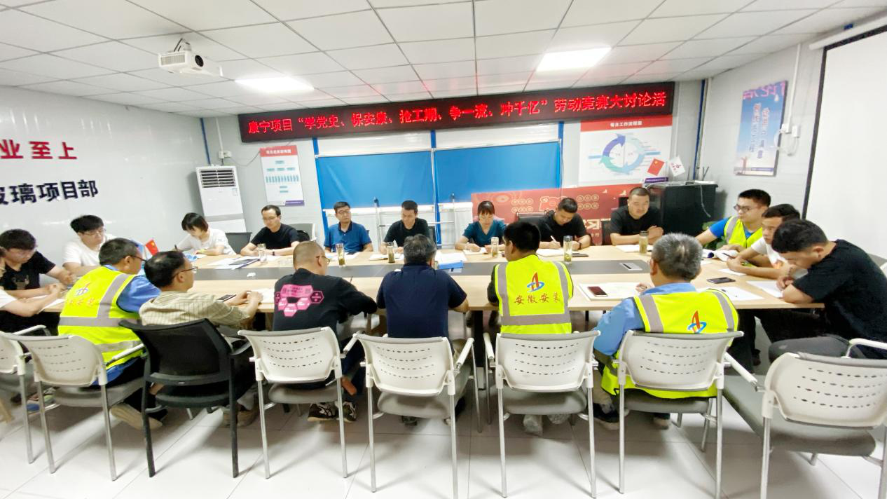 為貫徹落實(shí)集團(tuán)公司“學(xué)黨史、保安康、搶工期、爭一流、沖千億”主題勞動競賽活動精神,6月29日上午,安徽安裝公司在蚌埠康寧項目部會議室開展“學(xué)黨史、保安康、搶工期、爭一流、沖千億,大干60天,確保完成節(jié)點(diǎn)目標(biāo)”的勞動競賽大討論活動。公司副總經(jīng)理劉安俊,公司紀(jì)委書記、工會主席李寬旭,公司工程管理部經(jīng)理龍海健,蚌埠分公司領(lǐng)導(dǎo)班子成員,康寧項目部人員等30人參加了會議,會議由李寬旭主持。