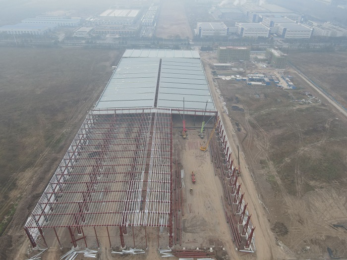 由合肥分公司承建的安徽建工智能鋼構(gòu)項目正在緊張施工中,現(xiàn)主體架構(gòu)已初現(xiàn)雛形。11月17日上午,項目部“50米跨屋面梁吊裝”工作正在進行,公司總工程師吳繼成現(xiàn)場指導(dǎo)吊裝工作,并為第一榀屋面梁進行掛紅儀式。公司總經(jīng)理助理、合肥分公司經(jīng)理、黨支部書記趙永峰,公司總工辦、安全部等相關(guān)部門負責(zé)同志參加。