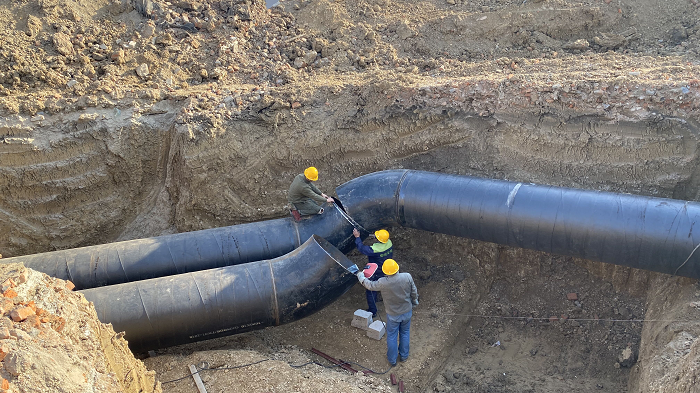 工藝管道班組也在忙忙碌碌,壓縮空氣管道在不斷架設,料場加工好的管道在吊車、葫蘆的牽引下就位,專業(yè)的焊工進行焊接,慢工出細活,保證每一道焊口符合規(guī)范要求,室外的循環(huán)水管也在與老廠的接口緊張對接。