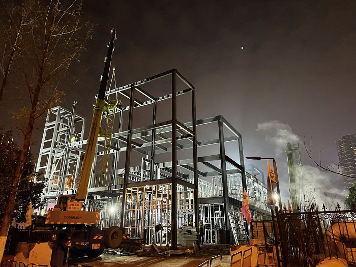 為搶抓工期,項(xiàng)目部迅速調(diào)集人力,自開(kāi)工以來(lái),項(xiàng)目一線施工人員一直保持在150人左右,采取24小時(shí)輪班制度,兩班倒的方式,“人歇工地不停”,在嚴(yán)格實(shí)施安全防疫的同時(shí)加班加點(diǎn)搶時(shí)間,趕任務(wù),確保項(xiàng)目現(xiàn)場(chǎng)施工不斷推進(jìn),即使是在不利于施工作業(yè)的雨天,大家也合理安排施工計(jì)劃,主動(dòng)放棄休息,在已經(jīng)封頂?shù)囊粚?、二層結(jié)構(gòu)中進(jìn)行水、電、通風(fēng)、內(nèi)部裝飾等工作,全力以赴加快項(xiàng)目建設(shè)進(jìn)度。