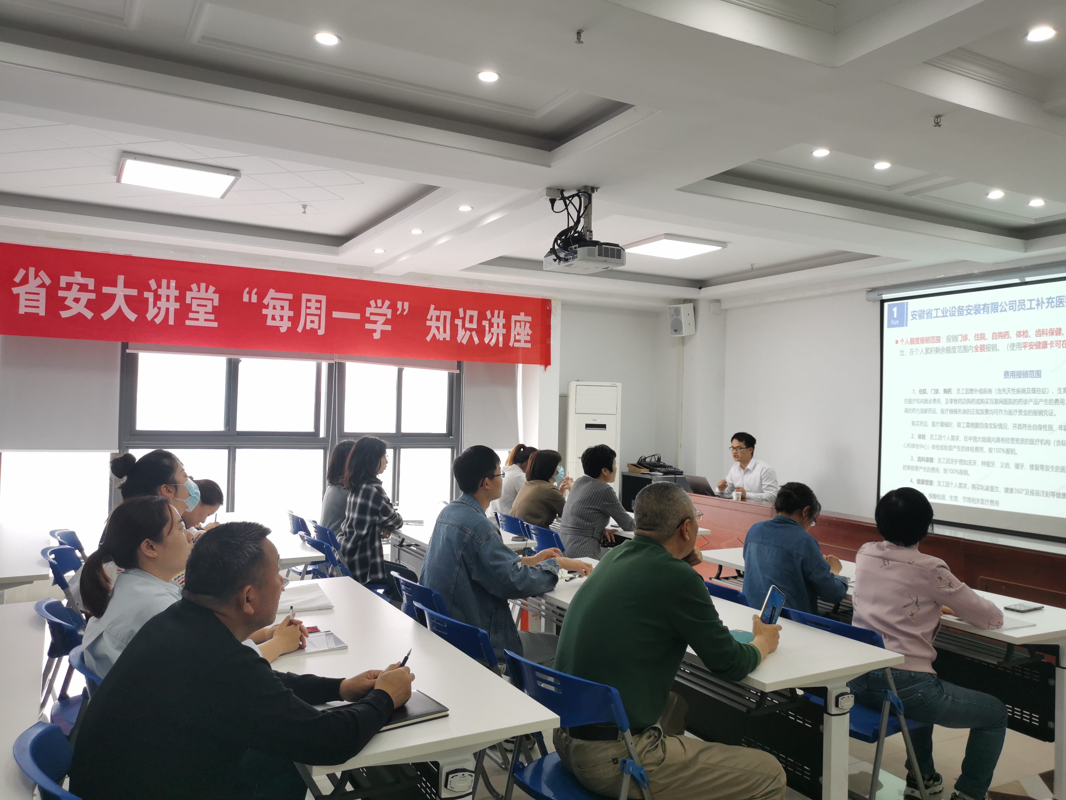 為落實(shí)公司《補(bǔ)充醫(yī)療保險(xiǎn)管理辦法》,進(jìn)一步提高員工醫(yī)療保障水平,使職工充分了解補(bǔ)充醫(yī)療保險(xiǎn)相關(guān)政策、條款及操作流程,人力資源部聯(lián)系平安養(yǎng)老保險(xiǎn)股份有限公司安徽分公司于5月13日舉辦了補(bǔ)充醫(yī)療保險(xiǎn)知識講座。公司機(jī)關(guān)各部門,所屬各單位共計(jì)40余名職工參加了培訓(xùn)。