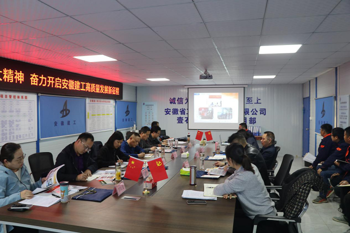 項目經(jīng)理周效洋首先代表項目部圍繞“一流工作、一流服務、一流業(yè)績、一流團隊”的目標要求,從項目管理、工作業(yè)績、創(chuàng)優(yōu)爭先、團隊建設、特色亮點等方面進行了展示匯報。隨后,胡六中介紹了安徽安裝公司堅持黨建引領,黨政工團齊抓共管,與生產(chǎn)經(jīng)營工作深度融合、齊頭并進的具體做法及成效。