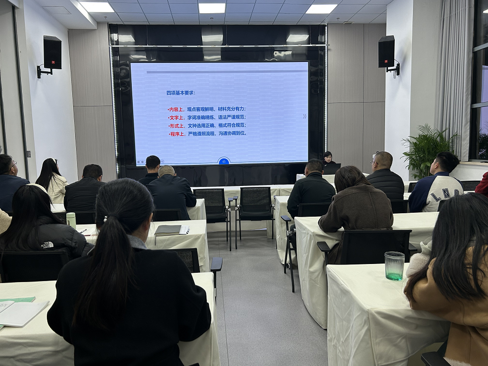 黃俊筠圍繞“日常辦公制度、常見公文寫作要點、商務禮儀”等方面內(nèi)容,重點解讀了業(yè)務接待、差旅費、跟進督辦等日常辦公制度。結(jié)合自身工作體會,黃俊筠用豐富的課件內(nèi)容,由淺入深地講解了常用公文的寫作技巧和接待工作的基本禮儀,并以實際案例分析工作中容易出現(xiàn)的問題和疏漏的細節(jié),提出改進的方法。