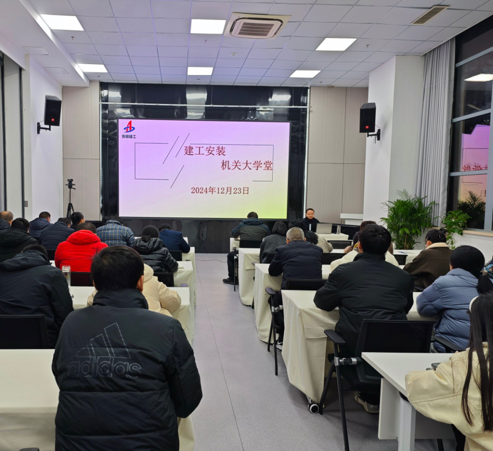 2024年12月23日在公司第一會議室如期舉行第四期建工安裝機關部門大學堂,本期大學堂由總工辦(技術中心)副主任夏輝進行授課,建工安裝黨委委員、副總經理董雙武和機關全體職工參加了講座。