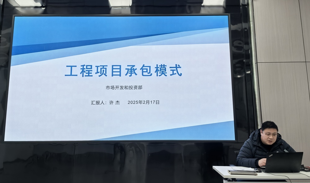 許杰聚焦工程項目承包模式,深入淺出地解讀了十種常見項目承包模式,并結(jié)合公司實際案例,從不同角度分析了每種模式的特點和適用場景,就集團市場開發(fā)有關(guān)工作部署進行宣貫。